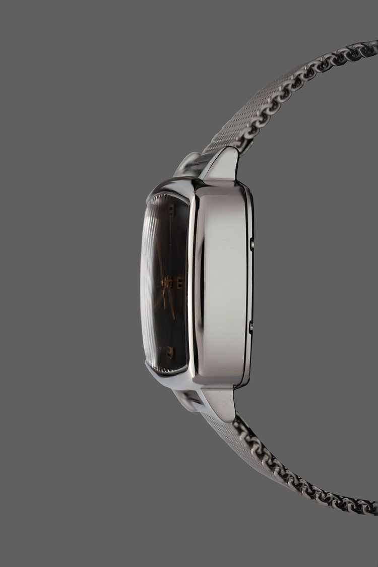 La caja de acero inoxidable fue diseñada pensando tanto en el estilo como en la comodidad. Su forma rectangular ergonómica sigue naturalmente los contornos del antebrazo. este tamaño se adapta perfectamente a la mayoría de los tamaños de muñeca, lo que permite un fácil movimiento del brazalete.