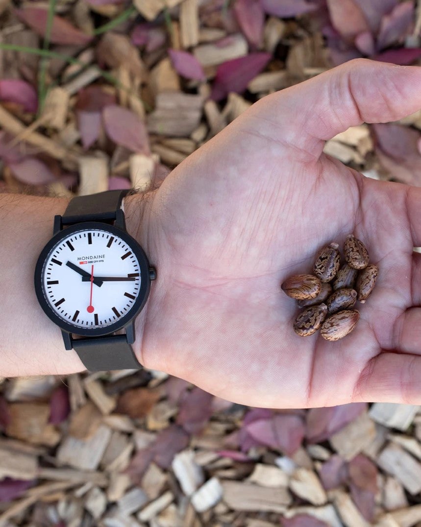 Mondaine combina dos de los valores fundamentales - innovación y sostenibilidad - para crear el reloj del futuro. Los relojes Essence están fabricados con lo último en tecnología relojera, junto con el 70% de las piezas construidas con materiales renovables.