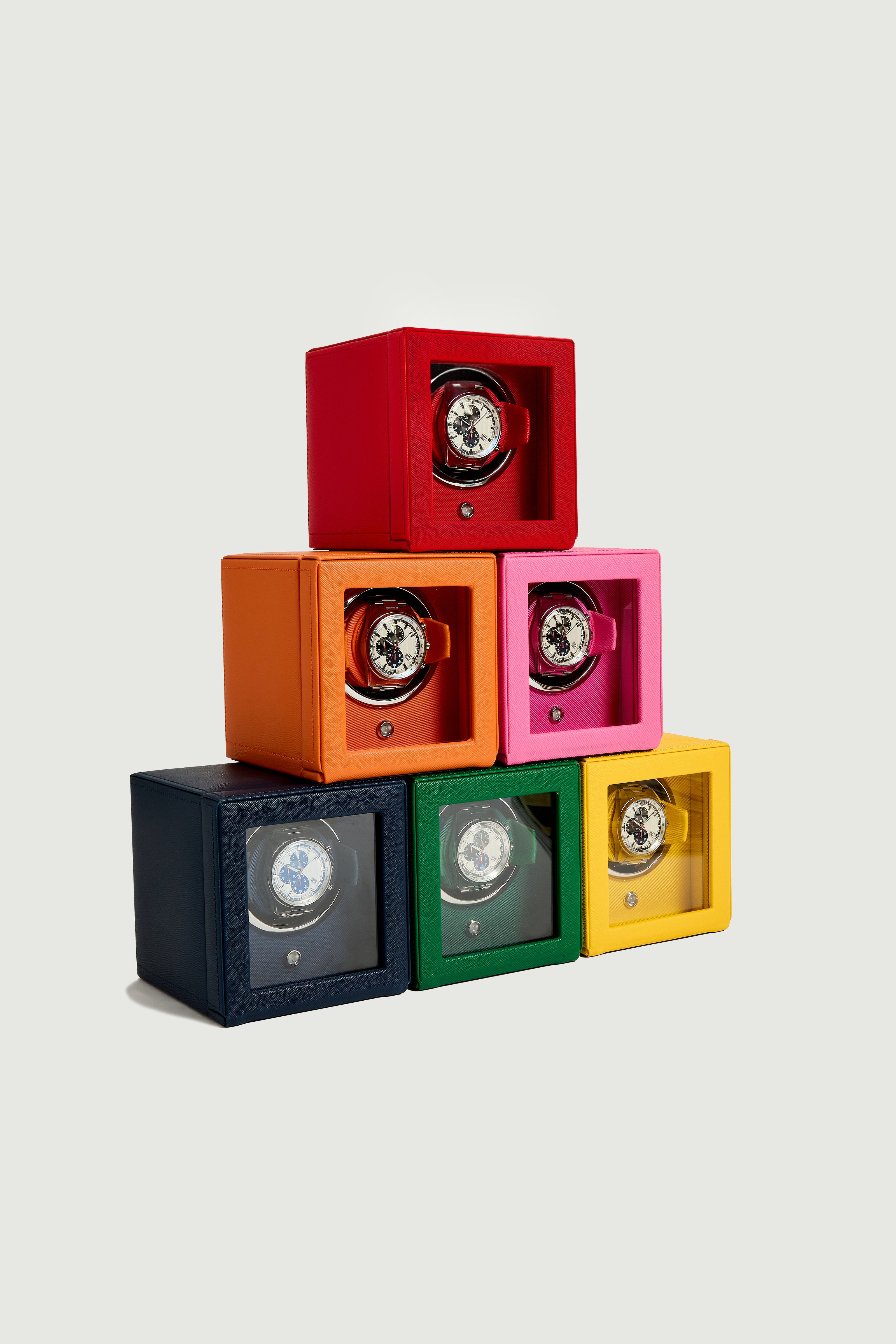 WOLF continúa revolucionando el arte de crear cajas en esta colaboración con la innovadora diseñadora de joyas Bea Bongiasca. Inspirada en el estilo de los años setenta, la colección consta de cajas para joyas, bandejas para joyas con tapa y miniestuches para joyas listos para viajar, todos en llamativas combinaciones de colores y patrones caleidoscópicos.