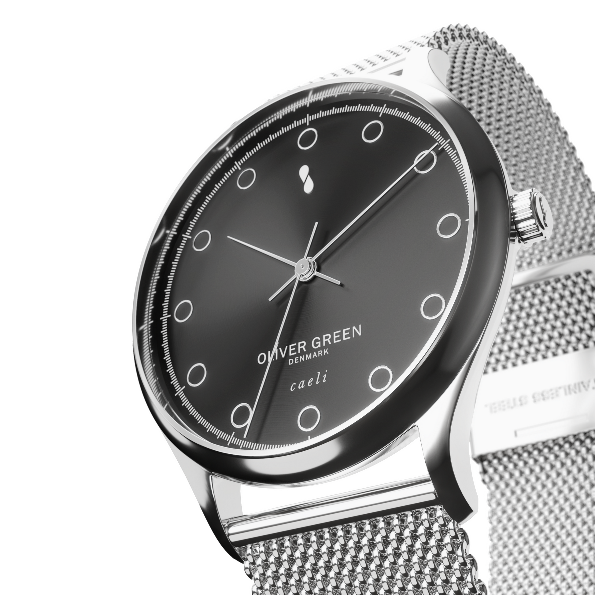 Caeli 39 mm Negro Malla Milanesa - Oliver Green