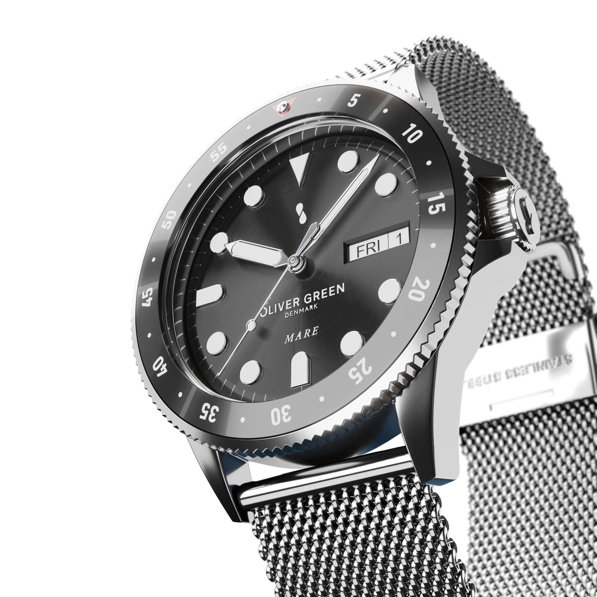 Mare 36 mm Negro Malla Milanesa - Oliver Green