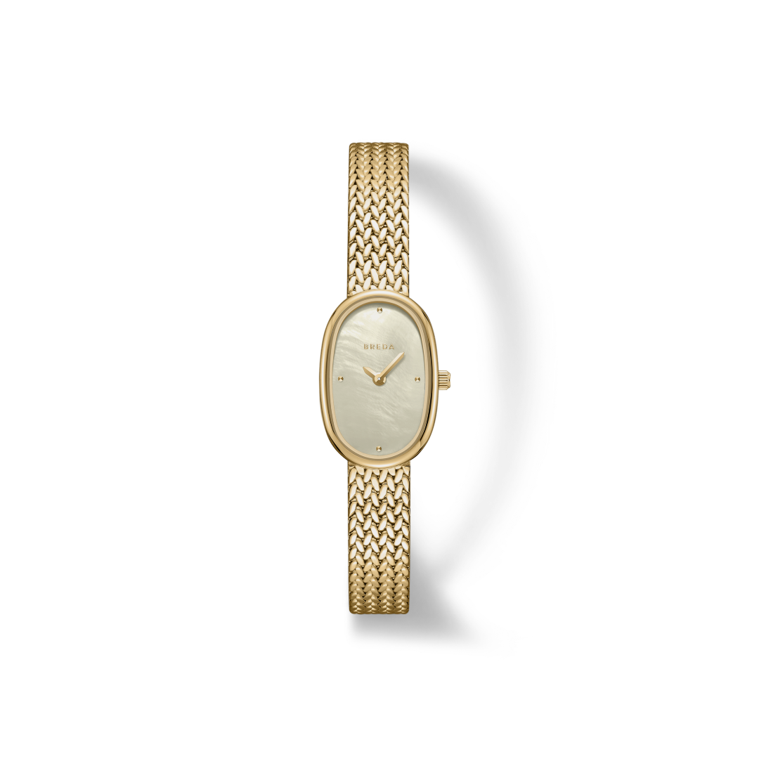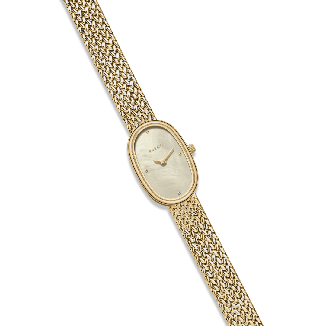 La colección Malla existe como un recordatorio diario de nuestra conexión humana y nuestros recuerdos compartidos entrelazados, colapsando sin cesar. El Jane (Malla) lleva una delicada caja ovalada de 18 mm, una esfera de nácar perleado y un brazalete de malla tejida ahusado que se cierra con un cierre de liberación rápida.