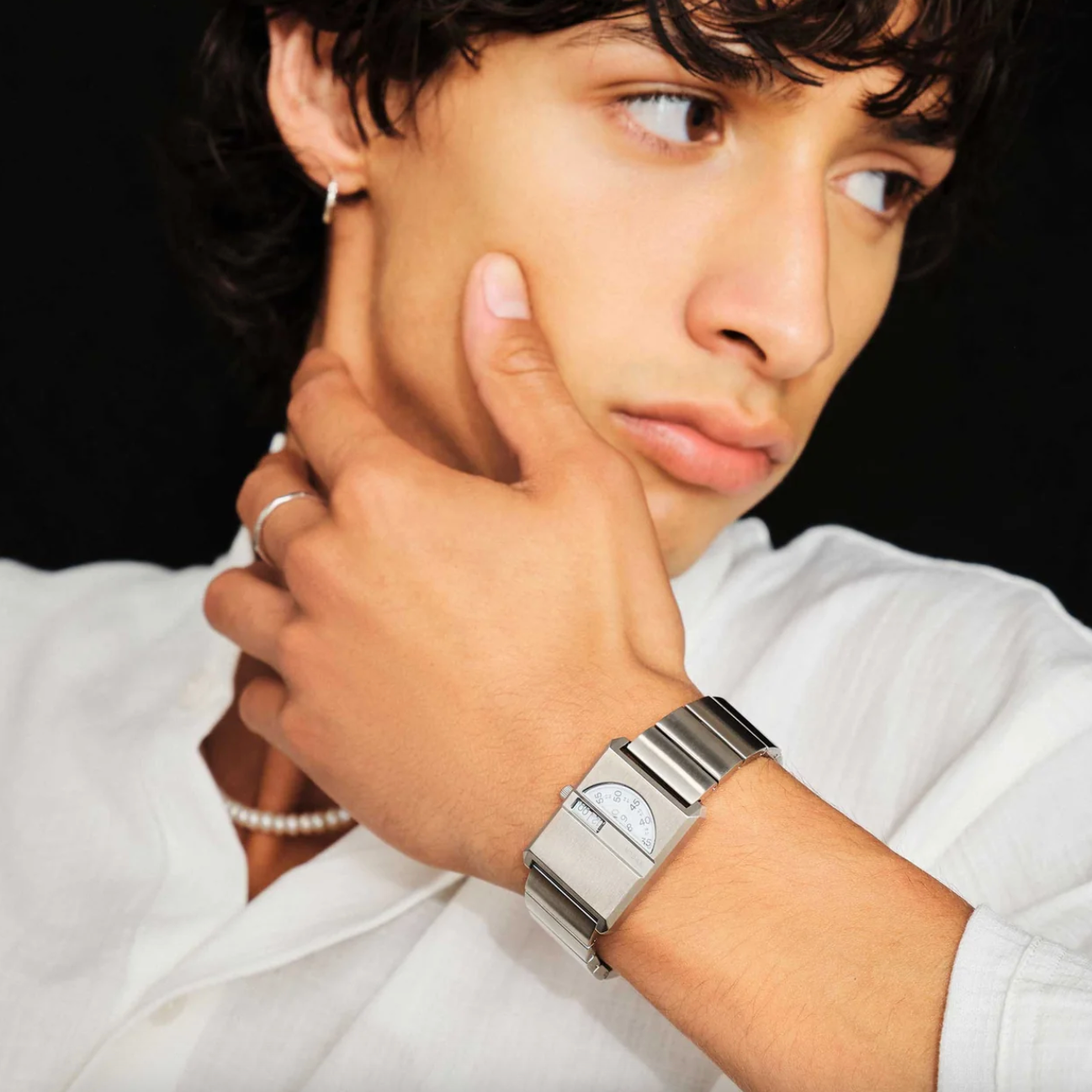 La colección Pulse (Tandem) examina los momentos cruciales de los ciclos de nuestras vidas humanas, centrándose en los momentos que nos moldean, que hacen que nuestros corazones se aceleren y nos impulsen hacia adelante. Tandem es una caja de 26 mm con una ventana abierta frontal en forma de media luna que revela la mitad inferior del movimiento del reloj.